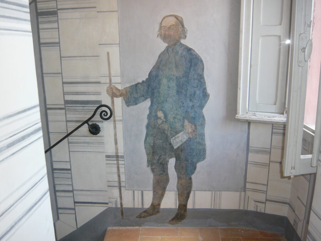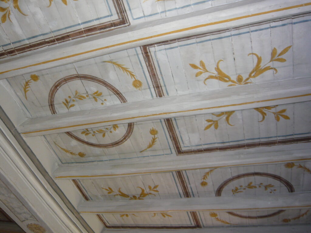 It is composed as follows: the main entrance is via a courtyard and on a stone to the side of the door, there is the date marked as 1696. The main door leads into a hall where a door leads into a spacious living room with a high ceiling with painted decorations.