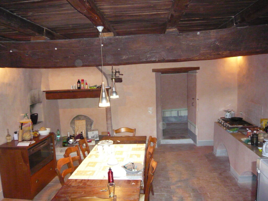 The same staircase, from the hall, also goes down to the lower level – half way down the staircase, there is a small toilet – then a corridor leads first on the left to a double bedroom with ensuite bathroom, then to the original very spacious kitchen of the Palazzo, that was kept pretty much intact, keeping an original bread oven and fireplace, while adding modern appliances, and which is fully fitted. There is also a laundry room with a washing machine and ironing board. A door to the outside in the kitchen leads to the exclusively owned pleasant outside area with space for al fresco dining.
